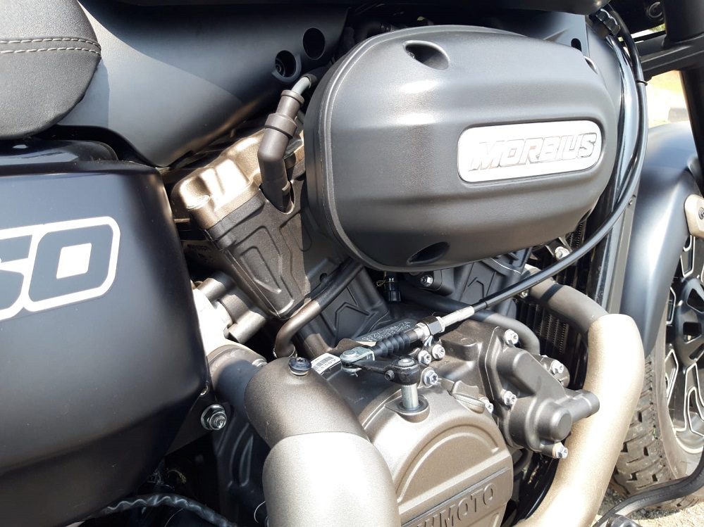 Sementara footstep dibuat menjorok ke depan, agar kaki pengendara bisa lebih leluasa. Sebagai sumber tenaga penggerak, Morbius dibekali mesin dua silinder berkapasitas 250cc, DOHC, 4 valve berpendingin cairan.