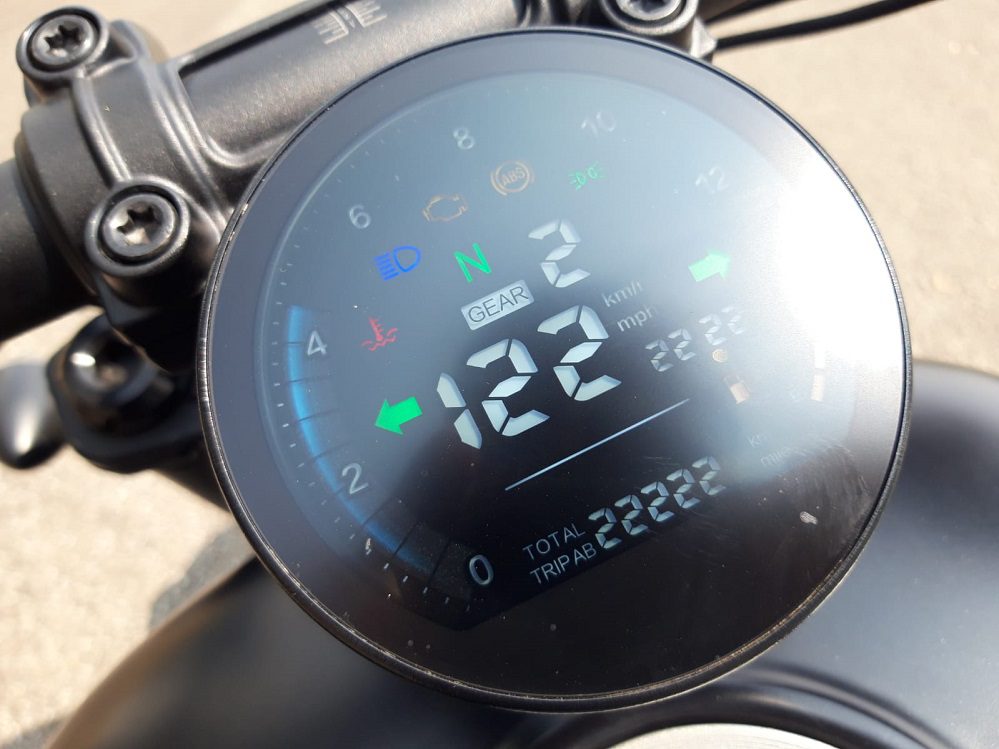 Lalu di bagian tengah, terlihat suguhan panel meter MID digital minimalis dengan layar bulat di tengah setang. Meski ukurannya kecil, namun layar tersebut mampu menampilkan sejumlah informasi yang mudah dilihat dan dipahami.