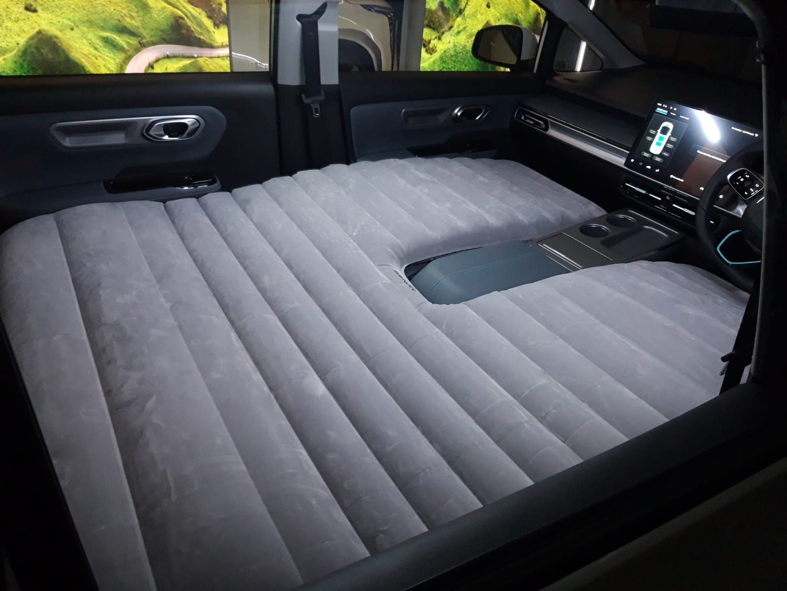 Salah satu keunggulan dari Aion Y Plus ini adalah kursi depan yang dapat diratakan 180 derajat dan menjadi kasur king size dengan ukuran 1.800 mm.