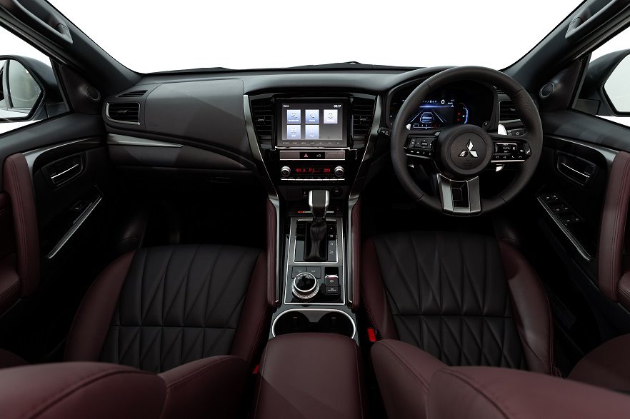 Didesain untuk meningkatkan kenyamanan dan modernitas, kursi Pajero menggunakan material kulit sintetis (synthetic leather) berteknologi heat guard. Material kulit sintesis berkualitas tinggi tersebut, hadir dengan two-tone color, yang memadukan warna elegan hitam dan burgundy.