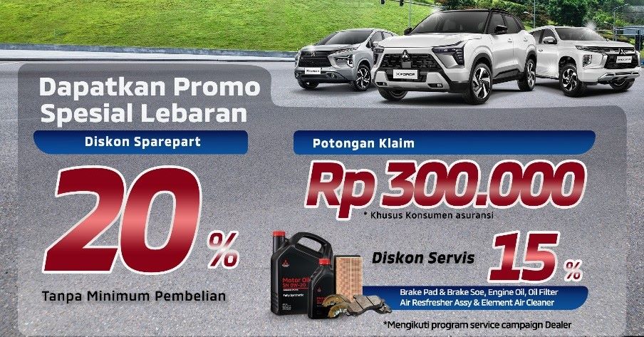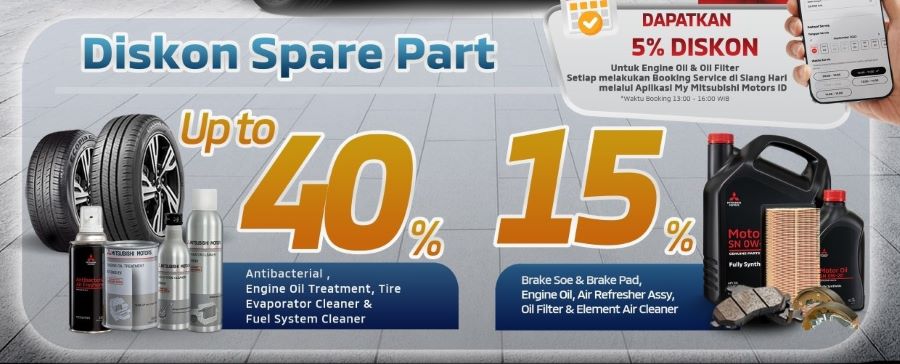 Mulai dari program perawatan dan suku cadang kendaraan dengan diskon menarik hingga 40%, serta diskon hingga 20% bagi konsumen yang melakukan perawatan di fasilitas Mitsubishi Bodi & Cat.
