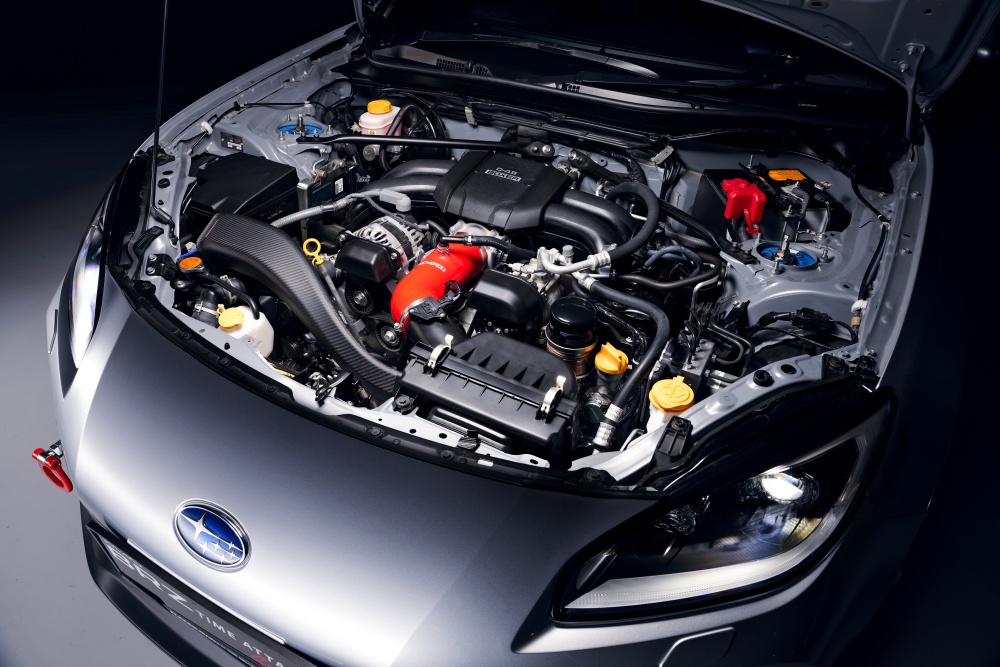 Modifikasi utama meliputi mesin Boxer 2.4L dengan peningkatan performa menggunakan header equal length yang melancarkan aliran gas buang. Ditambah Cusco Baffle Plate, untuk menjaga aliran oli tetap lancar meskipun mobil sedang bermanuver ekstrim.