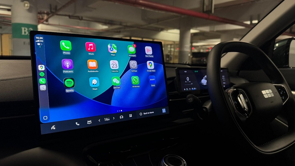 Geely EX5 menghadirkan beragam fitur baru yang mempermudah dan memperkaya pengalaman berkendara, termasuk integrasi Apple CarPlay yang kini lebih mudah dengan dukungan tombol kontrol suara di setir dan fitur aktivasi satu sentuhan.